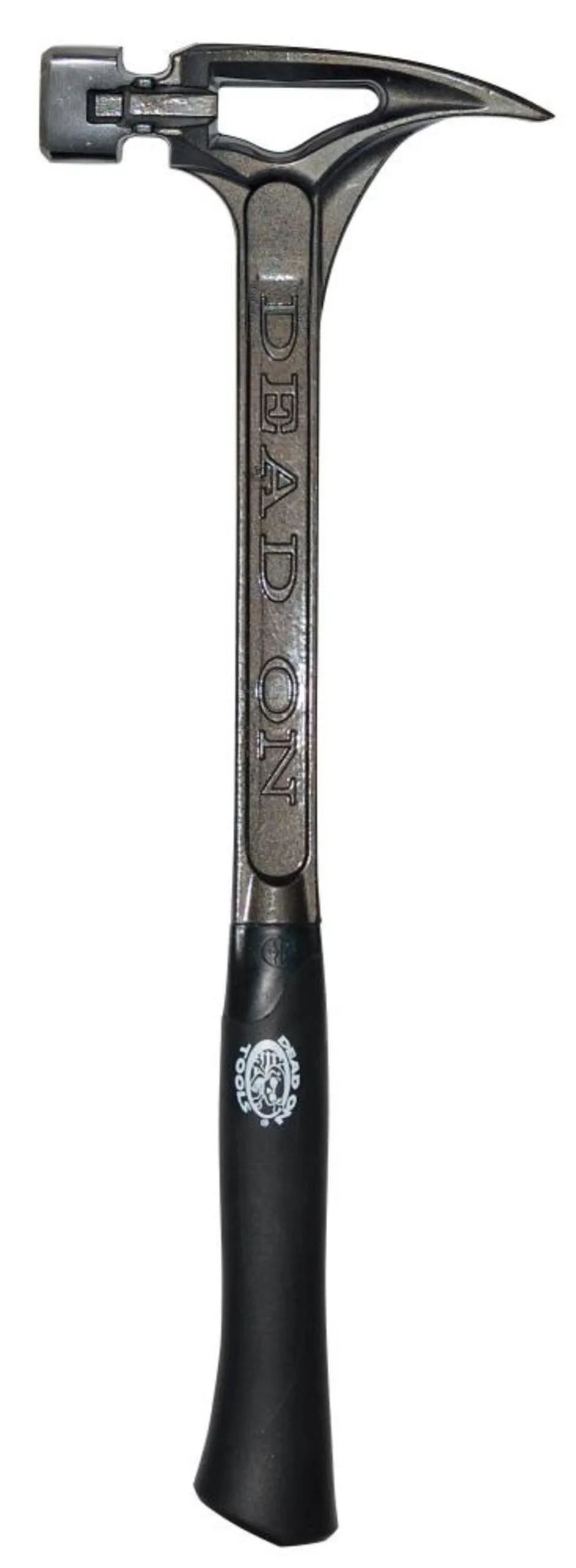 The Dead On tools 22 oz. Steel hammer with smooth face is ideal for demolishing drywall and other materials. It features a lightweight I-beam design for strength and has a rubber grip on the handle for forearm comfort. It is made with forged steel, has a magnetic nail set and has a unique nail pull on the front of the head for gripping tough-to-get nails.