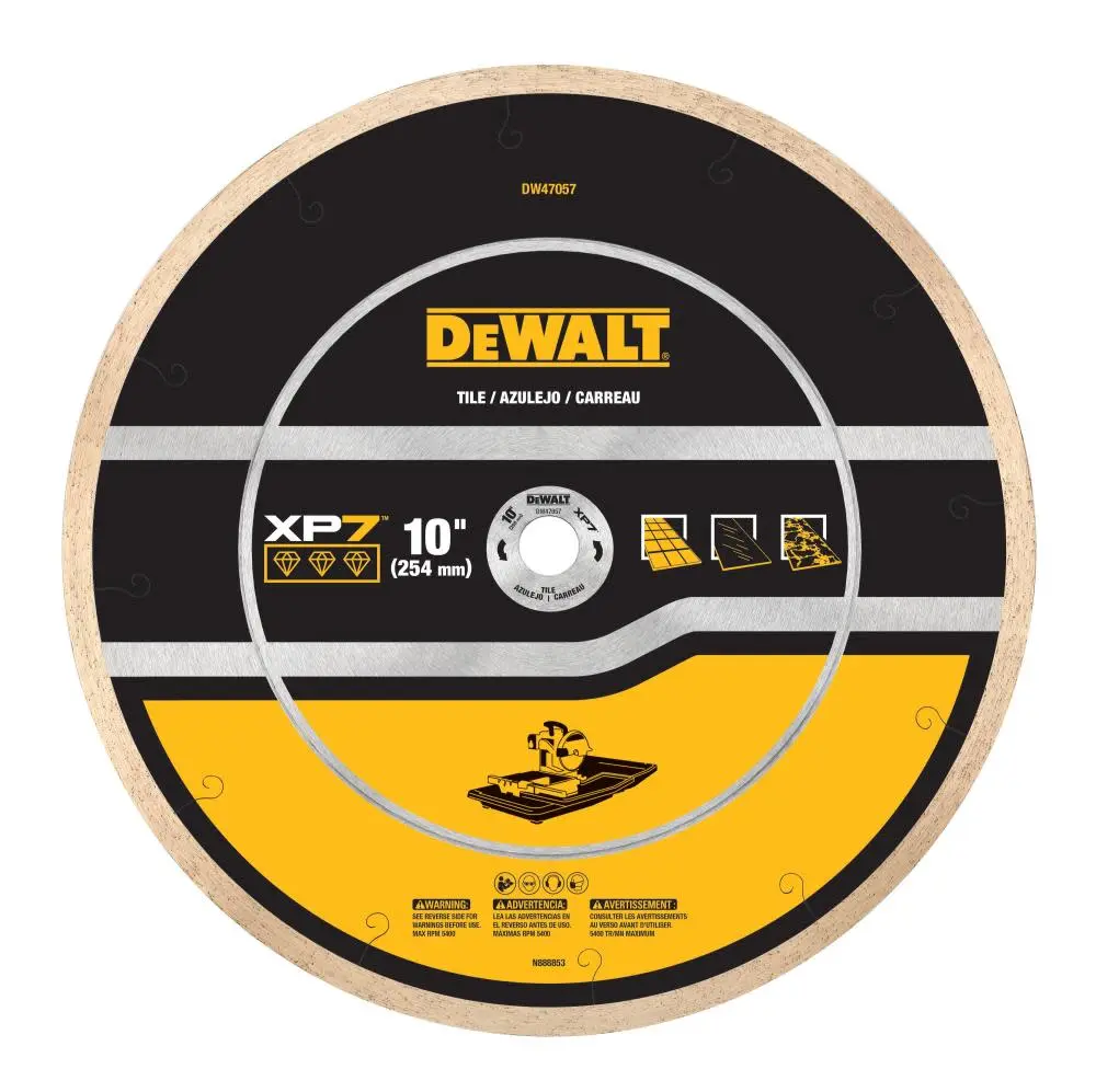 The DeWalt XP7 tile diamond blade delivers clean and pristine cuts with minimal wobble. Ultra-thin outer rim reduces breaks while ensuring straight and top-quality cuts. This 10 Inch blade runs at max speed of 6000 RPM. The reinforced hub is welded to the core to provide maximum stability.