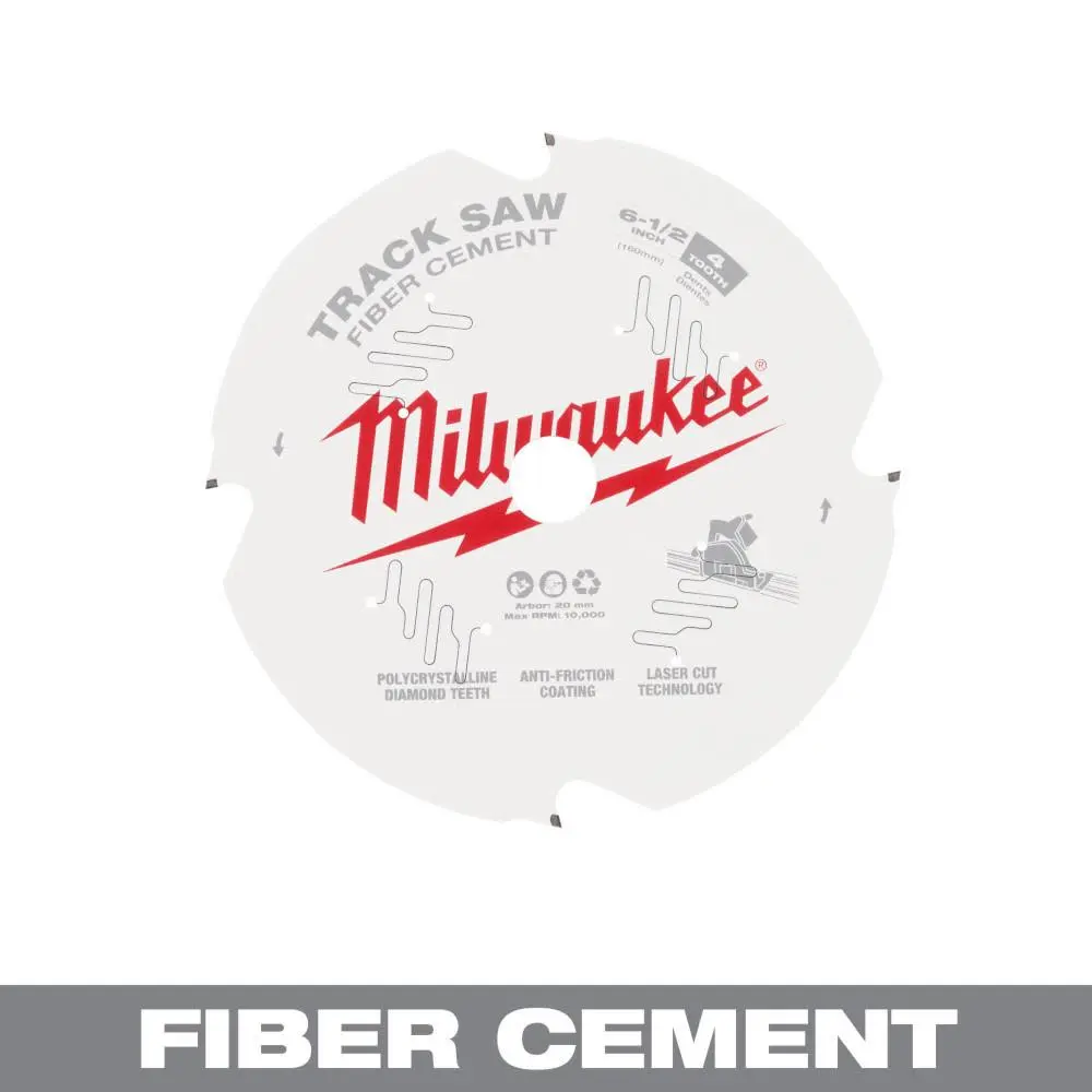 MILWAUKEE® Track Saw Blades were specifically designed to exceed the expectations of contractors for cut quality and accuracy while also delivering a longer life even in the most demanding plunge cut applications. The blades are designed utilizing polycrystalline diamond to extend cutting life in fiber cement with up to 75x life compared to carbide teeth blades. The blades feature a Laser cut body and Laser Cut Vibration Slots to reduce wobble and warping. With an Anti-Friction Coating, the blades resist corrosion and gumming. A thin kerf design delivers faster cuts as well as more cuts per charge when using a cordless tool.